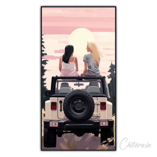 Two Girls Happy Siting Back Jeep Canvas ArtRegular price From Rs. 1,999.00Regular priceUnit price / per