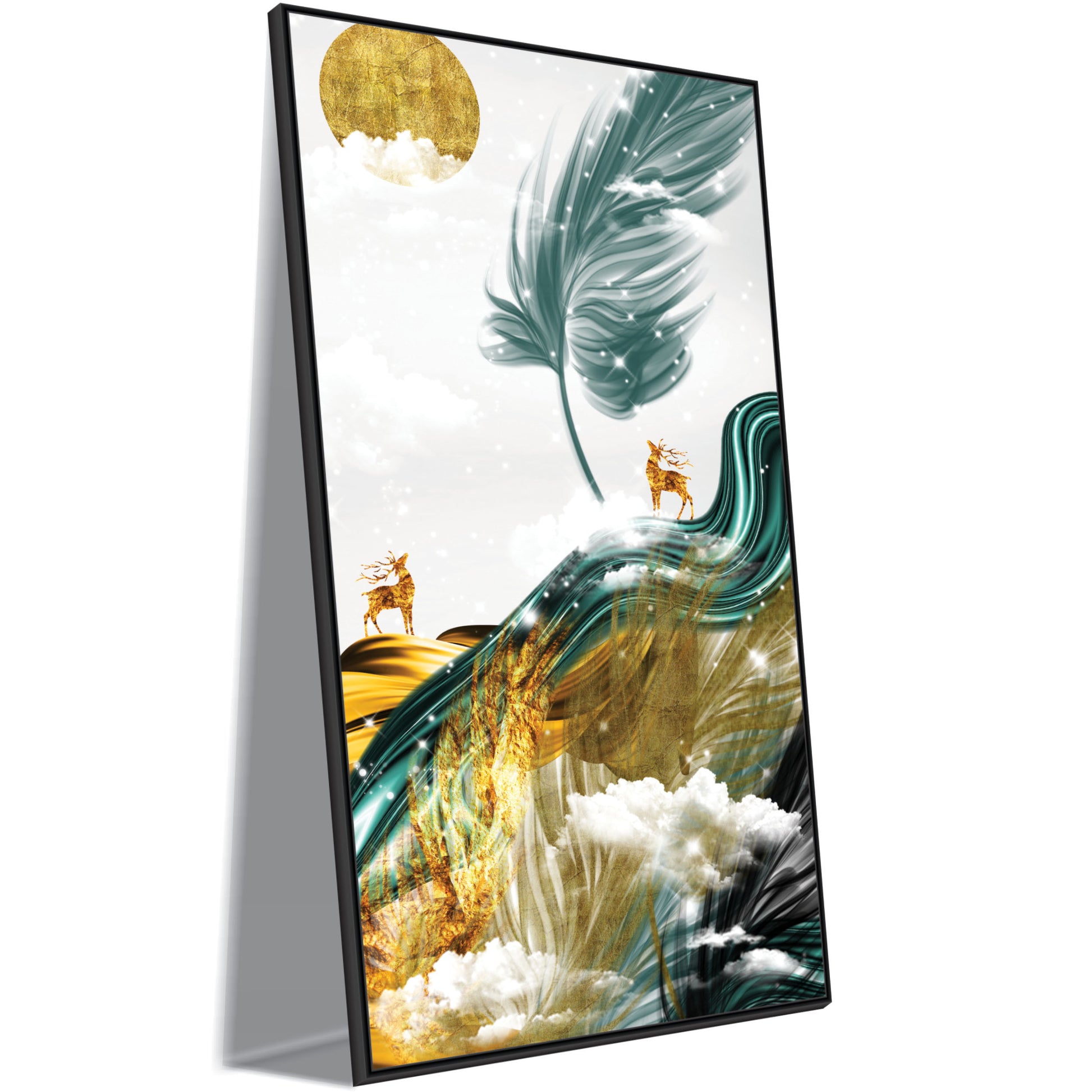 Gold textured Stag,Tree & Clouds